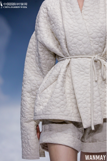 除了用材及設(shè)計(jì)“羽”眾不同,在視覺(jué)體驗(yàn)上,WANMAY以白色為基礎(chǔ)色,以大地色、淺駝色為點(diǎn)綴,以黑色為輔助,干凈純粹,簡(jiǎn)單分明。據(jù)WANMAY設(shè)計(jì)師介紹,此次以“羽”眾不同作為發(fā)布會(huì)主題,靈感來(lái)源于自然界中看似統(tǒng)一但形態(tài)各異的石頭,強(qiáng)調(diào)對(duì)度的把握,追崇時(shí)時(shí)處處、恰到好處的意境。