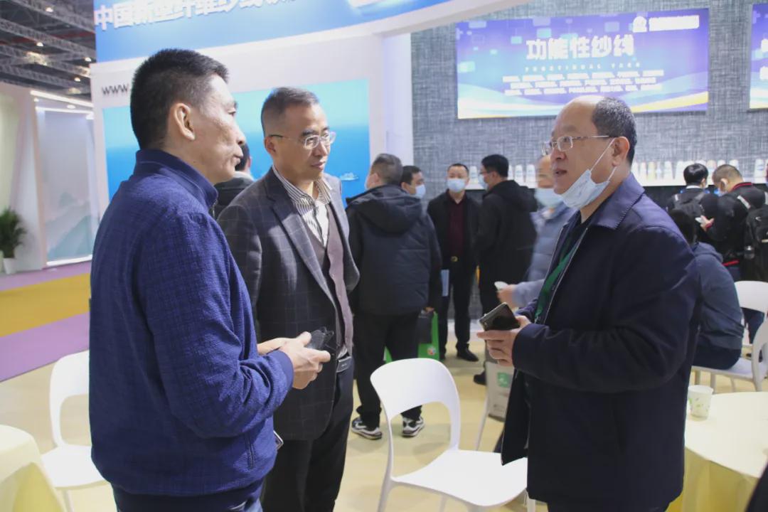 展會期間,東方國際(集團)有限公司高層領導到訪恒豐集團展位,參觀了集團功能性纖維系列、新特工藝紗線及織造產品系列產品。