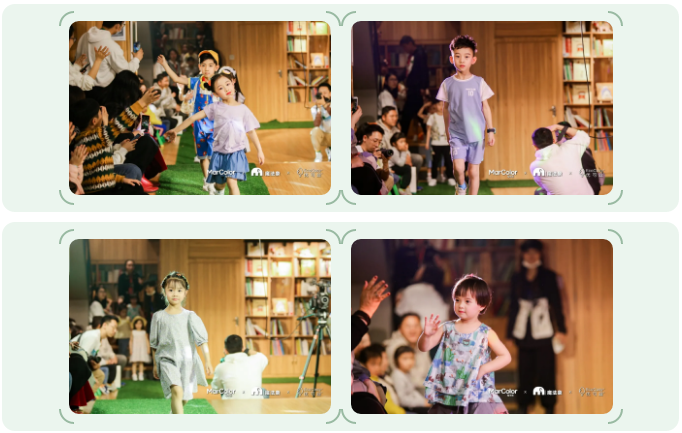 如何在兒童書店里打造一場新穎活潑的兒童時裝走秀和童書活動?同時宣傳自然環保的健康理念。“愛的魔法聯盟”根據三方品牌調性和產品內涵,為聯合發布會策劃設計了五大環節,并在魔法象和馬卡樂的天貓旗艦店和抖音官方號上做了全程直播發布。