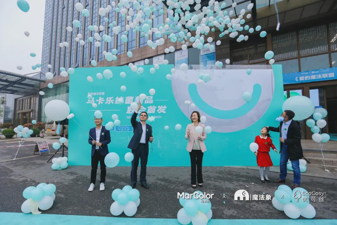 強強聯盟 賦能未來 “童裝+抗菌+繪本”會等于什么?在發布會現場優可絲、馬卡樂、魔法象共同揭曉了答案。三方聯合是時代所需,是“快樂成長、安全自然、關愛陪伴”的全新詮釋。