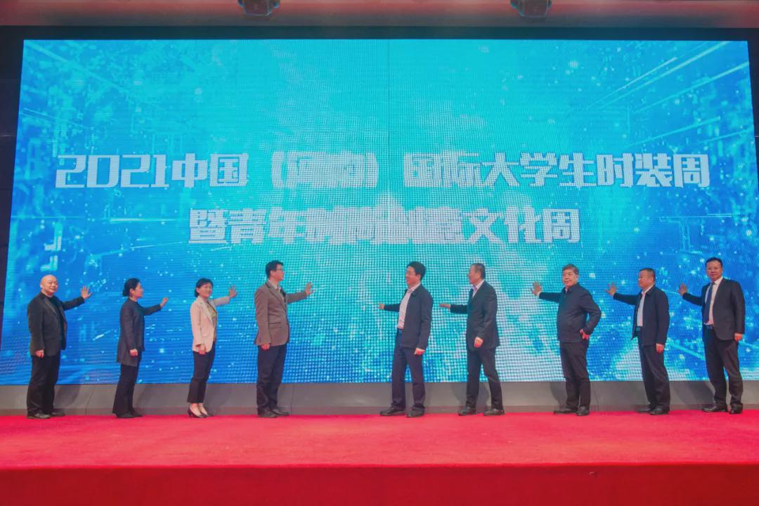 此次會議還舉行了2021中國(河南)國際大學生時裝周暨青年時尚創意文化周啟動儀式,楊紀朝、張錫安、程洋、黃萍、劉讓同、鄧潔、李剛、馬全志、王建勛9位代表共同觸摸屏幕,2021中國大學生時裝周正式啟動。