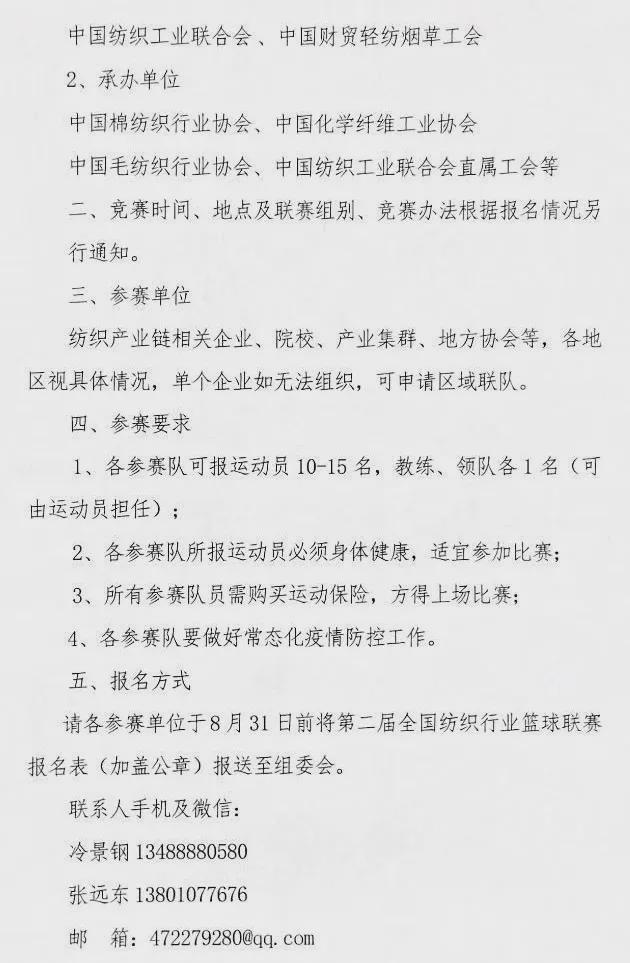 相約在秋季!第二屆全國紡織行業籃球聯賽報名啟動
