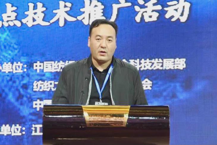 蘇州市四紡科技有限公司副總經理劉建成介紹“漿絲機的數字化應用技術”。公司是一家專業從事整漿并設備的企業,開發了系列數字化控制的整漿聯合機、并軸機等。公司生產的整漿并設備還配備了PLC遠程監控模塊,可及時為客戶解決生產中遇到的各種故障。