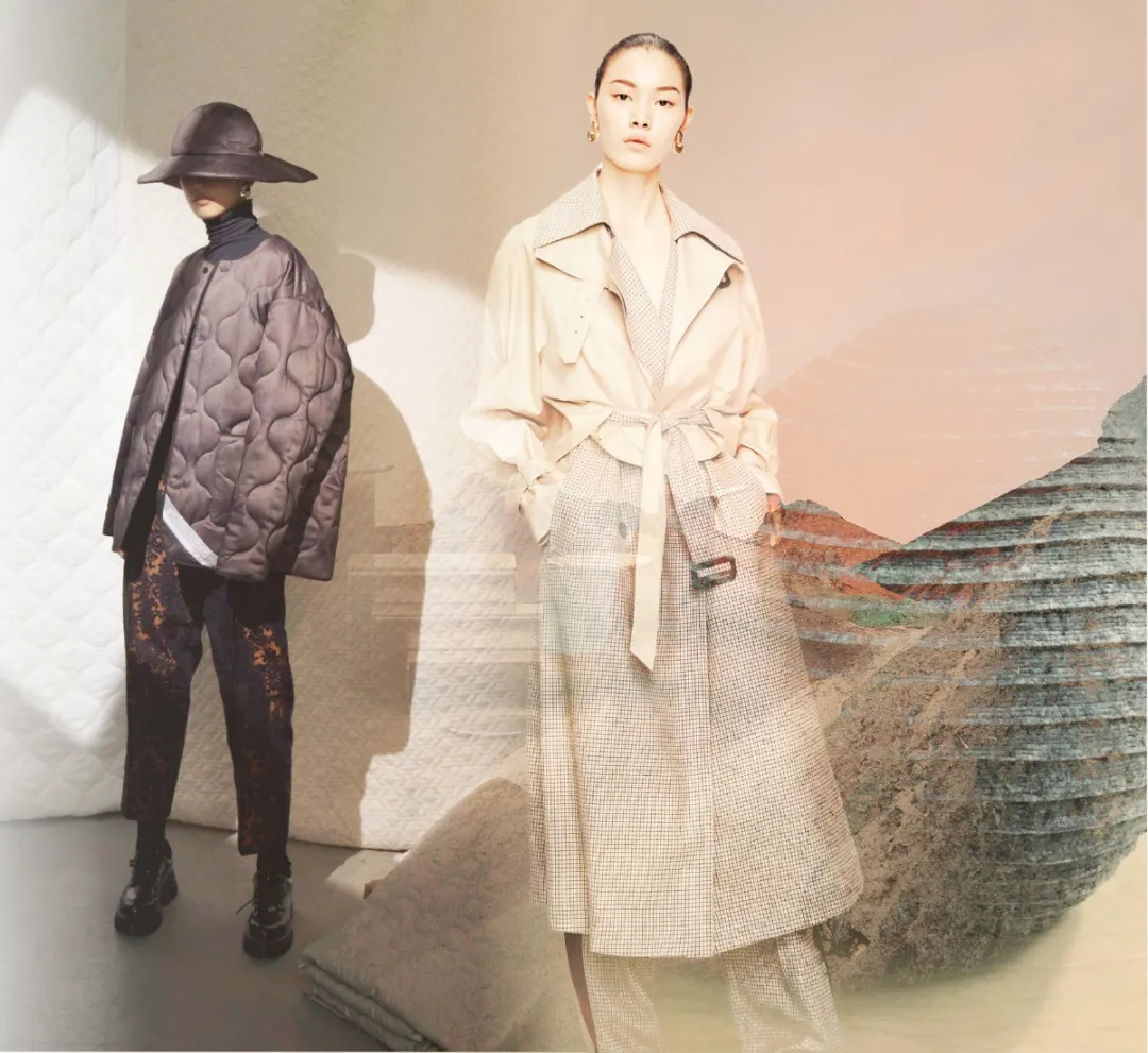 全球化可持續(xù)發(fā)展理念推進(jìn)生態(tài)化創(chuàng)新,消費(fèi)主義由追求數(shù)量轉(zhuǎn)向追求質(zhì)量,“少而精”成為時尚設(shè)計的主流趨勢,精簡精致、耐久實(shí)用、復(fù)合功能性、跨季節(jié)以及弱性別化為設(shè)計注入新極簡主義美學(xué)的豐富內(nèi)涵。男裝設(shè)計推陳出新,側(cè)重以高品質(zhì)原料打造經(jīng)久不衰的簡約經(jīng)典造型,舒適升級和一衣多用理念貫穿設(shè)計始終;女裝設(shè)計突出由內(nèi)而外的高級感和優(yōu)雅風(fēng)格,細(xì)膩表面與柔膚觸感升級服用體驗(yàn),腰帶、可拆卸配飾等細(xì)節(jié)設(shè)計畫龍點(diǎn)睛;戶外風(fēng)格以防護(hù)性能和原生質(zhì)感為重點(diǎn),探索時尚與自然的內(nèi)在關(guān)聯(lián),保暖、防風(fēng)防水、抗菌等功能性是設(shè)計關(guān)鍵,抽繩、防水拉鏈等機(jī)能輔料升級服裝的實(shí)用價值。
