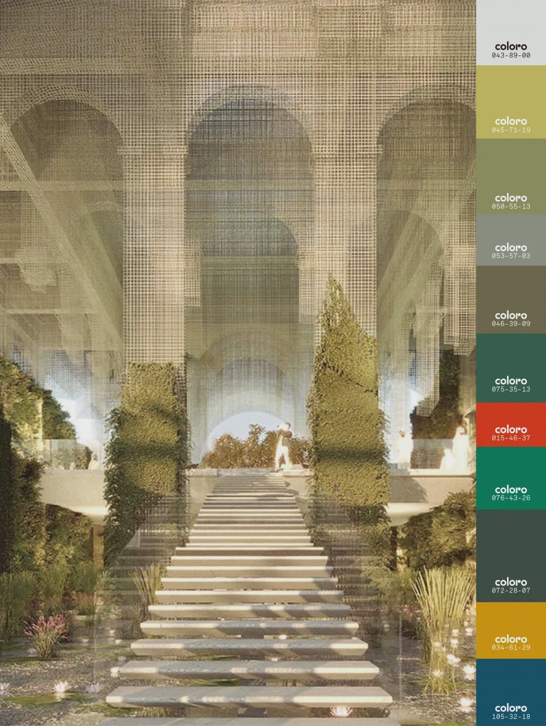 靈感與色彩 環(huán)保焦慮重塑“求生模式”,時尚與自然建立深度鏈接,可持續(xù)性基因成為創(chuàng)建原生美學(xué)的精神內(nèi)核。數(shù)碼感自然色更新傳統(tǒng)生態(tài)色組,構(gòu)建可持續(xù)的生存實(shí)用主義外觀。荼白色、煙灰綠還原真實(shí)環(huán)境,突出原生質(zhì)感;金綠色在中性綠色調(diào)中脫穎而出,飽含自然內(nèi)涵和重生希望;香料橙紅色強(qiáng)勢而突出,與自然色組調(diào)和,打造新式戶外風(fēng)格;綠青色和金黃色元?dú)鉂M滿,為暗色調(diào)提供柔和的平衡。重建人與戶外、自然的真實(shí)關(guān)聯(lián),滿載敬畏與向往之心,對話原生田園,感知綠色能量;通過科技創(chuàng)新實(shí)現(xiàn)生存防護(hù),捍衛(wèi)生態(tài)平衡。