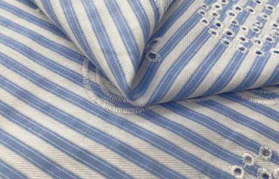 產品特點:運用100%純棉條紋色織布刺繡,白色的打孔效果,花型可愛靈巧、刺繡立體飽滿,柔軟舒適,可貼身穿著。