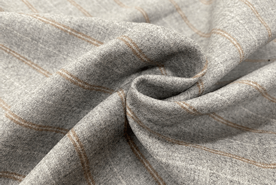 產(chǎn)品特點(diǎn):采用羊毛和再生滌綸及柔絲蛋白纖維混紡,緊密紡紡紗工藝及后整理水洗松軟工藝,壓光處理,使得織物手感柔糯,有質(zhì)感。