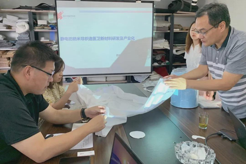 王菲/文 靜電紡制備的微納米纖維非織造材料具有高比表面積、高吸附特性,可制備高效低阻過濾材料、定向擴散導(dǎo)水衛(wèi)生材料等高附加值產(chǎn)業(yè)用紡織品,是我國“十三五”規(guī)劃紡織工業(yè)重點發(fā)展方向之一。憑借著生產(chǎn)技術(shù)的可控穩(wěn)定量產(chǎn)、所生產(chǎn)產(chǎn)品的高附加值以及完整的知識產(chǎn)權(quán)體系,“高曲率液面靜電紡非織造材料宏量制備關(guān)鍵技術(shù)與產(chǎn)業(yè)化”榮獲了“紡織之光”2019年度中國紡織工業(yè)聯(lián)合會科學(xué)技術(shù)獎一等獎。