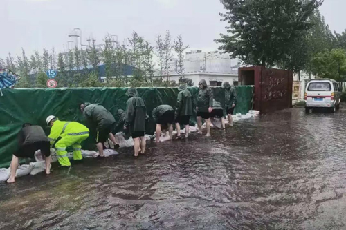 ![]() 嚴(yán)防死守,保證廠區(qū)生產(chǎn)安全。暴雨還未開始,公司新老兩區(qū)門口已然嚴(yán)陣以待,確保公司大門萬無一失。防汛正當(dāng)時(shí),供排水車間啟動(dòng)排澇泵房全力保障運(yùn)行安全。新老兩區(qū)保衛(wèi)處、供排水車間、防汛應(yīng)急分隊(duì)執(zhí)行24小時(shí)值班制度,嚴(yán)防死守,直面風(fēng)雨,他們裝填沙袋,在地勢低洼處迅速搭建防汛堤壩,確保把洪水堵在門外,保證公司廠區(qū)生產(chǎn)正常進(jìn)行。同時(shí),公司動(dòng)力車間立即啟動(dòng)應(yīng)急搶險(xiǎn)預(yù)案,組織人員到達(dá)積水點(diǎn),做好危險(xiǎn)點(diǎn)分析和相應(yīng)的安全措施,并迅速將水泵、電源盤、排水管等物資安裝到位,對(duì)電纜溝進(jìn)行抽水處理,確保無供電隱患。公司各部門組織黨員24小時(shí)巡邏,清理排水管道,確保下水順暢,廠區(qū)無積水。
