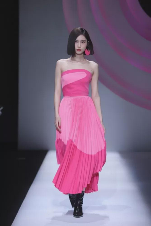 系列主題《視覺沖擊》 后疫情時(shí)代,催生著未來新時(shí)尚概念的形成,迪絲嫚苓DISIMAN.LING此系列運(yùn)用面料材質(zhì)的對(duì)比,色彩的對(duì)比,結(jié)合時(shí)尚顯瘦的版型,無論是色彩疊搭還是色塊拼接,繽紛色彩無疑成為時(shí)尚潮流的多元混合體,引發(fā)消費(fèi)者共鳴,玫紅作為整場(chǎng)秀的開場(chǎng),帶來一場(chǎng)視覺盛宴。