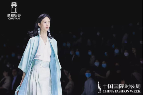 “楚和聽香CHUYAN”本季發布會以“有限·無限”為主題,以有形有限的服裝為載體,以內涵與人性之“美”為底色,以“中國美”為主旨,探索和表達新時代“中國美”的無限可能。 這種探索與表達,突破了傳統與現代、古典與時尚、東方與西方的次元壁。在深厚的文化積淀和文化自信的基礎上,化“美麗”為“美力”,表現中國文化之“大美”;以“各美其美,美美與共”的視野和格局,以美為媒,與中國的文化精神和審美精神對話,與世界對話,展現了新時代“中國美”的新范式。 有限·無限: 新時代中國美的探尋與表達 從2011年至今,楚艷創辦“楚和聽香CHUYAN”整整十年了。自品牌創立以來,就致力于中國傳統文化和美學意趣的當代傳承和表達,融通古典與現代、東方與西方、傳統與時尚,在設計中滲透文化與藝術內涵,同時充滿創新精神。