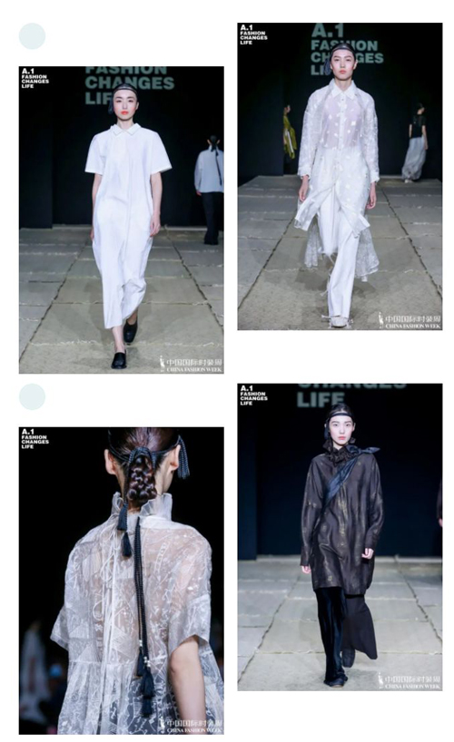 本次發布分為“玄黃”“時空”“臨在”“遷徙”四個系列。畢業于意大利馬蘭戈尼服裝設計學院的品牌創始人兼創意總監梁云俠,以“時裝”為媒,以“關愛”和“自由”為原動力,運用手工編織、手工流蘇、手工打欖、香云紗、面料二次改造等編織元素,采用大地色、橄欖綠、松花綠、深海藍、赤金黃等色彩使本季產品飽含樸拙詩意和浪漫主義色彩。