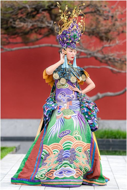 9月15日,北京時裝周“非遺匠心光耀東方”主題漢服創意大秀在北京新文化地標隆福文化廣場舉辦,中國紡織非遺推廣大使張義超、愉悅YUE BAST首席設計師王恕兒聯袂奉獻了一場東方美學創意大秀,中國紡織非遺傳統工藝結合當代時尚設計,以紡織服裝人的文化自信獻禮新中國72周年華誕。 漢服需要傳承,更需創新 本次大秀的發布作品均注重繼承與創新,并運用多種紡織非遺的工藝。 中國紡織非遺推廣大使、金頂獎設計師張義超本次作品主題為“五星出東方利中國”,作品創意靈感來自距今2000年的國寶文物“五星出東方利中國”漢代錦護膊,以“五星出東方利中國”美好寓意為魂,傳統漢服為意,國際流行為廓,現代織錦重工刺繡等非遺工藝賦予國寶時尚態度。