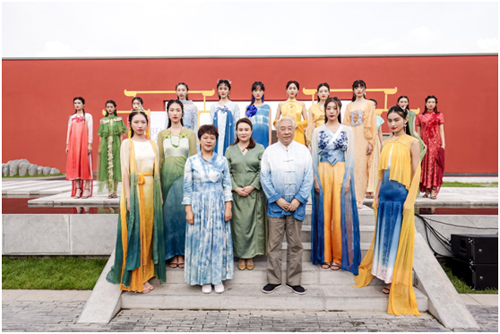 植物染非遺傳承人黃榮華(前排右三)與設計師王恕兒(前排左四) 漢服熱是本土文化認同的覺醒 漢服是華夏文明的重要組成部分,是漢民族傳承了數千年的傳統民族服飾,漢服正在成為一種新的流行文化風潮,不僅代表著傳統和現代文化交織的自我表達,更是中國民族精神的承載物。如今出現的漢服熱國潮熱,都是當今中國本土文化認同的覺醒。 中國自古就被稱為衣冠上國、禮儀之邦,而“衣冠”也是文明的一種代名詞,是華夏禮儀的一部分。這次秀場絕美的漢服時裝之外,此次創意秀所配置的頭飾主要有發簪、發釵、步搖、花鈿、珠花等,涵蓋部分漢代頭飾款式,模特妝容上也結合了古代妝容現代演繹。