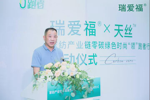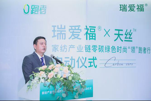 江蘇瑞愛福紡織科技有限公司董事長胡文彪在發(fā)言時(shí)談到,瑞愛福一直致力于家紡綠色高端面料的研發(fā),于2014年與奧地利蘭精集團(tuán)形成戰(zhàn)略合作伙伴關(guān)系,此次與蘭精攜手推出零碳天絲?面料,旨在發(fā)揮國際家紡產(chǎn)業(yè)集聚優(yōu)勢,將低碳環(huán)保理念深度融入家紡產(chǎn)業(yè)供應(yīng)鏈,不斷壯大零碳綠色時(shí)尚“領(lǐng)”跑者隊(duì)伍,做家紡產(chǎn)業(yè)可持續(xù)發(fā)展的有力推進(jìn)者與踐行者,從產(chǎn)業(yè)鏈綠色可持續(xù)發(fā)展的角度,打造更多綠色環(huán)保的優(yōu)質(zhì)產(chǎn)品,將可持續(xù)發(fā)展時(shí)尚理念傳遞給消費(fèi)者。