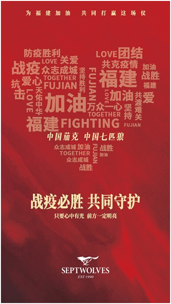 福建疫情牽動著以七匹狼為代表的福建民企和各地商會的心,而他們一系列的慈善舉動也激揚和迸發出閩商的無疆大愛,展現了以七匹狼為代表的民族品牌永不磨滅的家國情懷。七匹狼將同億萬華夏兒女一起,馳援抗疫,共克時艱!正如七匹狼董事長周少雄的抗疫宣言那樣,“只要心中有光,前方一定明亮,期待回歸平安,再現繁榮,疫散花開!” |