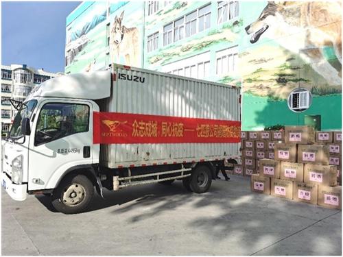 作為一家具有社會責任的上市企業,七匹狼又一次以實際行動詮釋民族品牌的責任擔當。作為閩商代表的七匹狼董事長周少雄垂先率范,果斷發聲,他表示:“七匹狼將繼續關注疫情,協同社會共同抗疫,永不放棄,守護好每一位員工,我們相信福建疫情終將過去,我們有信心也有決心,也將和所有的狼族伙伴、和前線的醫護人員們一同共克時艱。”七匹狼黨委書記吳興群也第一時間作出工作部署,及時組織防疫物資生產及供應配送。2021年9月21日,七匹狼向廈門市翔安區、晉江市金井鎮政府、公安干警、防控辦、醫護人員捐贈醫用一次性防護服、隔離衣、一次性使用醫用口罩、醫用外科口罩、N95防護口罩等防疫必需用品,將點滴溫暖匯成大愛江河,為抗疫精神寫下了最生動的注腳。