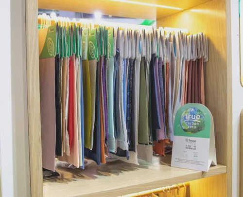 本屆展會上,蘭精集團著重展示了取材可持續天然木源的零碳天絲?萊賽爾纖維和零碳天絲?莫代爾纖維的各類應用。零碳天絲?纖維完全源自于植物,100%生物基,可再生,可生物降解,不僅具備了標準天絲?品牌纖維的功能優勢,包括親和肌膚、持久柔軟、觸感順滑、有助透汽和色澤穩定等,更是獲得了國際Carbon Neutral?認證,成為遵循全球“CarbonNeutral?碳中和協議”的最嚴格準則的凈零碳排放產品,具備更高的環保價值。