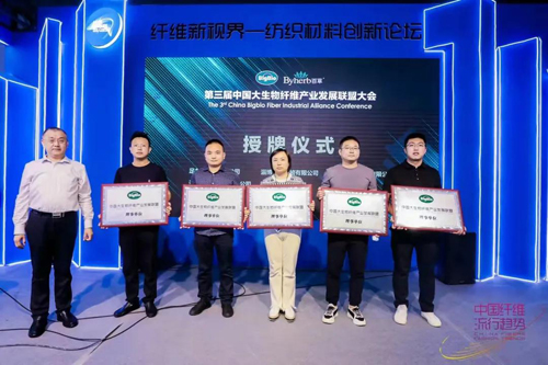 在聯盟授牌儀式中,為納入聯盟理事單位的紡織行業優秀企業頒發理事單位牌匾,本屆新成員如下:睢縣足力健鞋業有限公司、淄博飛獅巾被有限公司、蘇州威爾德工貿有限公司、圣雪蘭紡織科技有限公司、萬姿科技有限公司、山東超越紡織有限公司、夏津仁和紡織科技有限公司、廣州市華宏勝紡織品有限公司、際華三五四三針織服飾有限公司、山東聚德鑫紡織有限公司、常州思凱紡織品有限公司、華祥泰紡織有限公司、義烏帛陽服飾有限公司共計13家企業。