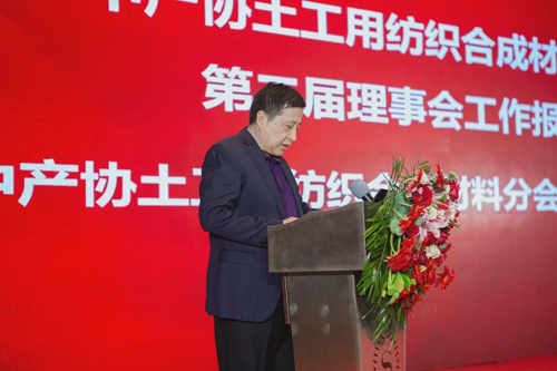 孫晉良在視頻致辭中提到,2001年,我國土工布的用量只有5.6萬噸,而且產品單一。2020年,我國土工用紡織品的產量已經超過110萬噸,產品結構豐富多樣,能夠滿足不同復雜程度的施工條件,既降低了工程造價和施工難度,又提高了工程質量,并且更加綠色和環境友好。但是,與歐美日等先進國家和地區相對比,我國土工建筑材料行業的基礎研究、技術水平、產品質量、關鍵設備、高端材料及配套的標準體系建設等仍有一定差距,“大而不強”仍是土工建筑材料行業的一個突出問題。他希望新一屆理事會在加強產學研用的深度融合,開展面向應用、工程設計的技術探討,推進技術創新和應用拓展,完善行業標準體系和應用規范等方面繼續努力,推動土工建筑材料行業的轉型升級,繼續為“美麗中國”建設貢獻力量。