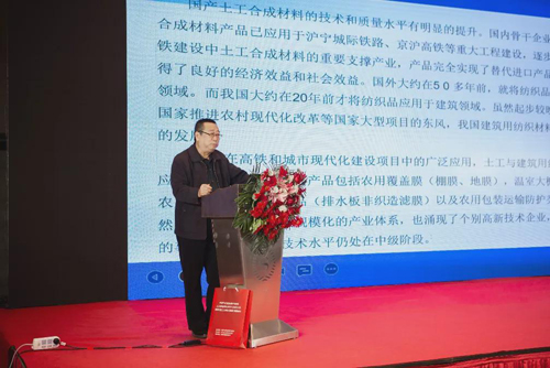 北京市水科學技術研究院教授級高工竇寶松作《土木工程及建筑結構用紡織品發展現狀與趨勢》報告,從發展現狀、產品特征、主要應用領域、產品標準和應用發展趨勢五方面對土工與建筑用紡織品進行了詳細介紹。他講到,近年來,世界各國都非常重視建筑和土木工程用紡織品的發展和應用,開發了許多具有特殊功能的新材料,紡織品的應用領域得到了極大的擴展。發達國家在建筑程領域使用紡織材料的概率是15%,但是我國不足1%。自建筑用紡織品被列入產業用紡織品推廣項目之后,我國的土工紡織品在水利、交通、鐵路、水運、建筑等領域的應用得到長足發展。未來行業需要在產品新型化、智能數字化、自主創新性和適用性產品等方面下功夫,以紡織技術生產為主的形式轉向以適應各種實際工程需要為目的進行生產,推動土工與建筑用紡織品向綠色低碳、數字化、智能化和柔性化等方向發展,創立自主知識產權,研發更適用于環境工程的產品。