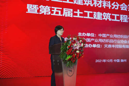 李桂梅在大會總結發言中講到,在會員單位的共同見證下,大會選舉產生了土工建筑材料分會新一屆理事會,對新當選的會長、副會長、秘書長以及所有理事會成員表示祝賀。她表示,分會第一屆、第二屆理事會在崔占明會長的帶領下,為行業發展貢獻很大。一屆、二屆理事會期間也是行業“十二五”“十三五”規劃的實施期,“十二五”時期,產業用紡織品行業把土工與建筑用紡織品作為行業的六大重點領域之一進行大力發展,經過全行業十年的共同努力,土工與建筑用紡織品領域結出了豐碩的果實,2020年纖維加工量達到204.73萬噸,相比“十一五”末的76.13萬噸,增長了169%。《產業用紡織品行業“十四五”發展指導意見》對土工與建筑用紡織品發展提出了更高的要求,希望新一屆理事會在強化科技創新的引領作用,加大新技術應用力度,強化工程應用研究,推進與下游應用領域的深度融合,強化科技標準協同建設,不斷完善標準體系等方面繼續加大力度,全行業凝心聚力,共創土工建站材料行業美好未來。 交流分享,共同進步 在大會同期舉辦的第五屆土工建筑工程設計創新論壇中,多位專家帶來了精彩紛呈的報告,為參會代表介紹了土工建筑材料領域最新的產品、技術、應用、標準等內容,分析了行業發展現狀和趨勢。論壇對加強土工建筑材料行業上下游技術交流與深入合作有著良好的推動作用。
