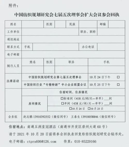 中國紡織規劃研究會七屆五次理事會擴大會議即將舉行