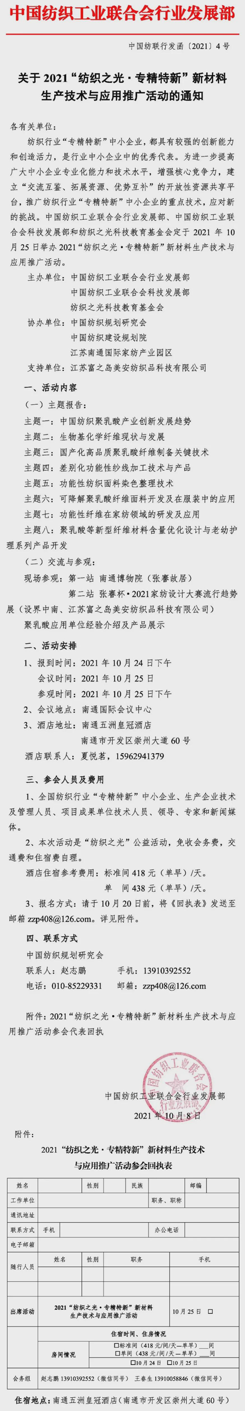 | 2021“紡織之光·專精特新”新材料生產(chǎn)技術(shù)與應(yīng)用推廣活動將在南通舉辦 |