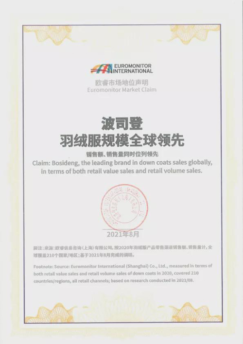 此外,這次波司登與國(guó)際知名設(shè)計(jì)大師合作,不僅充分發(fā)揮了各自的優(yōu)勢(shì)將中西文化完美結(jié)合,進(jìn)一步打破了羽絨服設(shè)計(jì)的國(guó)界,為羽絨服品類的發(fā)展翻開(kāi)新篇章,未來(lái)還將推動(dòng)雙方長(zhǎng)期合作,創(chuàng)造更高價(jià)值。 創(chuàng)新羽絨服品類 波司登開(kāi)拓羽絨服新藍(lán)海 羽絨服市場(chǎng)龐大、前景樂(lè)觀:預(yù)計(jì)2022年中國(guó)羽絨服市場(chǎng)將達(dá)到1621億元。廣闊的市場(chǎng)空間給眾多品牌帶來(lái)了機(jī)遇。與此同時(shí),頭部品牌競(jìng)爭(zhēng)也愈發(fā)激烈,數(shù)據(jù)表明,全球20%的頭部品牌占領(lǐng)80%的市場(chǎng)。 今年8月,歐睿官方發(fā)布權(quán)威認(rèn)證報(bào)告:波司登羽絨服規(guī)模全球第一,頭部品牌優(yōu)勢(shì)凸顯。面對(duì)激烈的市場(chǎng)競(jìng)爭(zhēng),波司登的突破創(chuàng)新是品牌長(zhǎng)遠(yuǎn)發(fā)展的核心驅(qū)動(dòng)力,也為其謀求了更廣闊的市場(chǎng)空間。