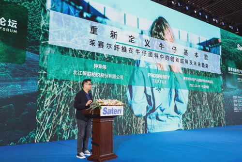 北江智聯紡織股份有限公司市場總監鐘章偉以《重新定義牛仔基本款——賽得利萊賽爾纖維在牛仔面料中的創新應用及未來趨勢》為題發表演講。他重點分享了冰感防曬牛仔合作案例,從市場前景、產品品類、營銷工具、線下活動等方面進行深度解析。同時,他也分享了北江紡織精心研發下的萊賽爾牛仔豐富的多面形象,分別講解了重新定義的牛仔基本款、“外酥里柔”的吐司牛仔和標志性的多纖維混紡技術C-BLEND。在最后,鐘章偉強調道,秉承著“科技丹寧+萊賽爾纖維=無限可能”的發展愿景,北江紡織將持續推動牛仔面料的創新發展和可持續性。