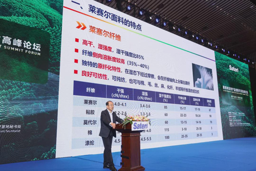 劉濤在論壇上發表致辭。他表示賽得利秉持“產業鏈聯合,伙伴式合作”模式,長期致力于從纖維源頭推動全產業鏈的協同創新,提高產品附加值,并將可持續發展納入賽得利發展的戰略規劃,運用新原料和新技術開拓市場?!敖涍^一年的努力,賽得利萊賽爾從零開始,通過不斷地投入、調研和開發,我們已經完全掌握了生產高質量萊賽爾纖維的工藝和技術。我們將會通過與下游客戶合作,將萊賽爾應用到更廣泛的領域,開發出更適合消費者的產品。”他強調道,未來賽得利會持續在穩定的供應、穩定的質量、穩定的合作關系、穩定的服務四方面做深做實,讓萊賽爾的供應得到保障。