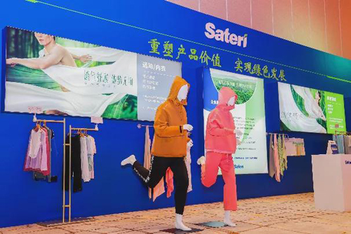 論壇現場特別設置的“賽得利系列產品創新展示區”,精選了來自賽得利下游合作企業的優質產品。展示區通過運動/內衣、休閑牛仔、家居家紡、時尚女裝四大終端應用領域,集合展示了以優可絲?系列纖維、纖生代FINEX?、萊賽爾纖維三大綠色纖維產品為原料進行研發生產的紗線、面料、服裝、家紡等全產業鏈創新產品,全方位展示賽得利系列纖維產品的多元創新應用與生態環保價值。