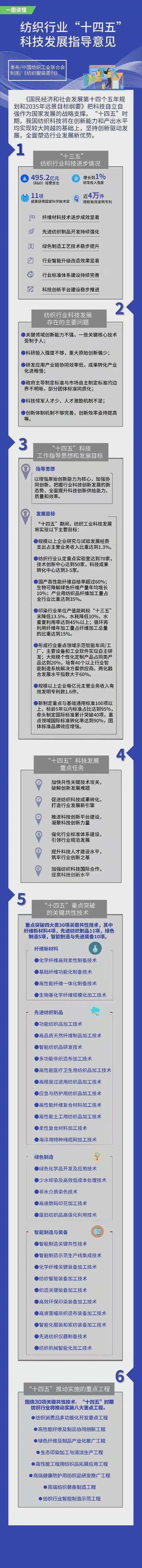 2021年6月,中國紡織工業聯合會發布了《紡織行業“十四五”發展綱要》及《科技、時尚、綠色發展指導意見》。“十四五”時期,我國紡織科技將在創新能力和產出水平均實現較大跨越的基礎上,堅持創新驅動發展,全面塑造行業發展新優勢。