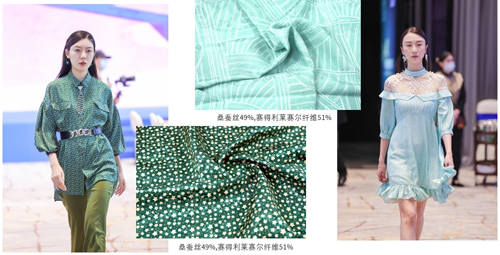 采用80S萊賽爾與桑蠶絲交織,提花與印花工藝相結(jié)合,開(kāi)發(fā)出適合時(shí)尚女裝和時(shí)尚家居服面料,保證了面料柔和的絲質(zhì)光澤同時(shí)提高了性價(jià)比。