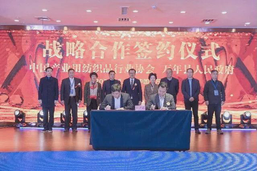 萬年縣紡織產(chǎn)業(yè)簽約儀式,簽約儀式分2批進(jìn)行。第一環(huán)節(jié):中國產(chǎn)業(yè)用紡織品行業(yè)協(xié)會副會長段守江、萬年縣人民政府副縣長李錦春簽訂戰(zhàn)略合作協(xié)議。