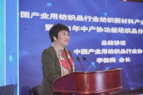 ![]() 最后,中產(chǎn)協(xié)會長李桂梅作總結(jié)發(fā)言。她首先對功能紡織品分會的工作進(jìn)行了肯定,并指出,功能紡織品分會成立一年多來,通過走訪重點(diǎn)企業(yè)、發(fā)展新會員、對接科技等服務(wù),以及編制會員信息手冊,在行業(yè)內(nèi)外廣泛宣傳,使分會的行業(yè)影響力不斷提高。