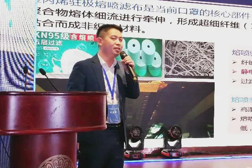 康衛(wèi)民還對高效低阻熔噴駐極濾布制備技術(shù)、樹枝狀電紡納米纖維膜制備技術(shù)、非對稱高阻隔PU多級孔防水透濕膜制備等技術(shù)進(jìn)行了介紹。