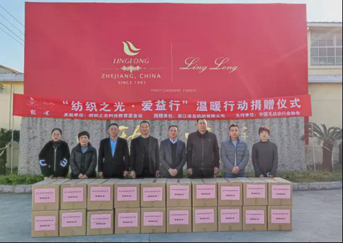 浙江凌龍智尚科技股份有限公司在本次溫暖行動中捐贈價值189470元的長款羊毛大衣、羊毛保暖外套、保暖針織衫共計362件。凌龍擁有意大利、德國、日本等精良設(shè)備,形成集梳紡、織造、染整、服裝為一體的、科學(xué)的研發(fā)、生產(chǎn)體系。同時,公司擅長使用山羊絨、兔毛、羊駝毛、馬海毛、蠶絲、駝絨、牦牛絨等特種動物纖維和美麗諾羊毛,創(chuàng)造一系列具有經(jīng)典、時尚和功能性的高端、奢華的毛織品。