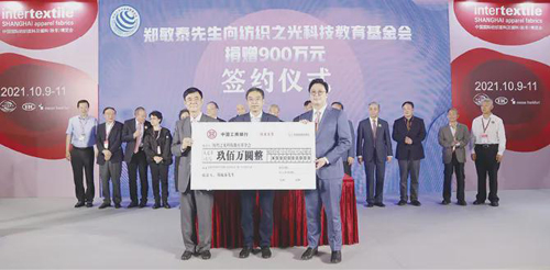 2021年10月9日,在中國紡聯(lián)秋季聯(lián)展現(xiàn)場,安莉芳集團(tuán)創(chuàng)始人鄭敏泰先生向紡織之光科技教育基金會捐贈900萬元。鄭敏泰先生自2010年和2014年兩次向紡織之光基金會捐贈人民幣共計(jì)1100萬元,目前,其向“紡織之光科技教育基金會鄭敏泰專項(xiàng)基金”捐贈金額總計(jì)已達(dá)到2000萬元。