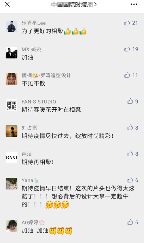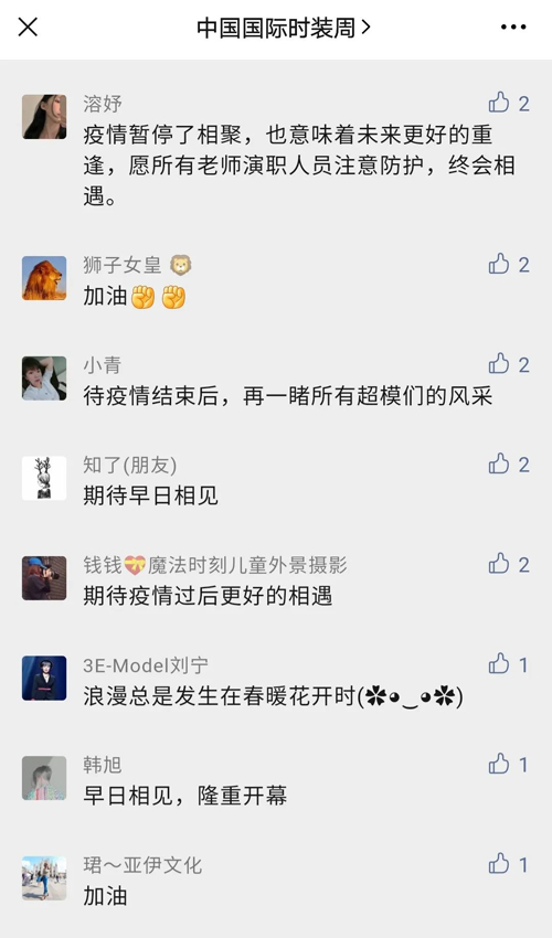 近日,記者從中國國際時裝周組委會處獲悉,原定于3月24-31日舉辦的“2022秋冬中國國際時裝周”因疫情原因,將延期舉辦。 通知一經發出,便收到了來自各方的關心與鼓勵,大家紛紛留言“期待疫情盡快過去,綻放時尚精彩!”“時尚是一種態度,充滿治愈傷痛的能量!快些讓這灰暗的一篇掀過去,讓大家都能露出那久違的微笑。”“疫情暫停了相聚,也意味著未來更好的重逢,愿所有老師、演職人員注意防護,終會相遇。”……一句句溫暖的話語,充滿了體諒與期待,展示著服裝人頑強的斗志。