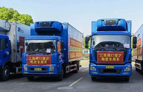 4月10日,湖口縣點對點援助上海物資從文體公園廣場發車,7輛貨車,滿載著30萬湖口人民的情誼。車上是總價值200余萬元的生活及防疫物資,10萬斤物資需在一天時間內完成裝箱裝車,需要社會各界愛心人士援手相助,時間緊任務重,湖口縣志愿服務聯合會立即向全縣征集志愿者。為響應湖口縣委縣政府同心抗疫的號召,在接到這個消息時,賽得利九江的志愿者們踴躍報名,數十名志愿者當天早上7點就達到現場。