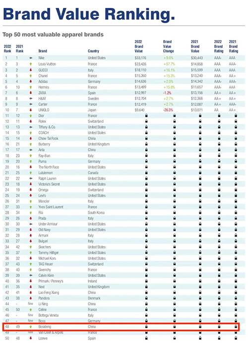 | 再次入選“全球最有價值50強服飾品牌榜單”,波司登全球影響力穩步提升 |