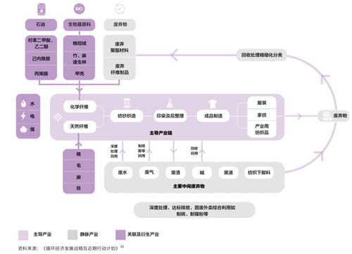 ![]() 《循環時尚:中國新紡織經濟》提出中國新紡織經濟愿景:構建綠色循環低碳紡織服裝產業體系,提高行業資源利用效率,減少資源消耗和負面環境影響。