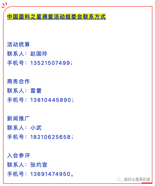 4、入圍及獲獎面料企業,可優先加入“中國面料之星社群”,群里將定期發布訂單對接信息、行業最新資訊、行業動態等最新信息。