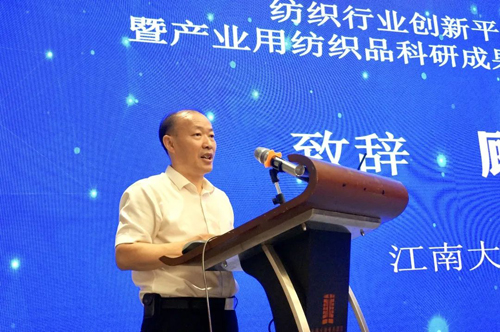 ![]() 江南大學(xué)副校長顧正彪在致辭中介紹了學(xué)校及紡織學(xué)科情況,他指出,在國家持續(xù)推進戰(zhàn)略性新興產(chǎn)業(yè)發(fā)展、構(gòu)建雙循環(huán)新發(fā)展格局的背景下,產(chǎn)業(yè)用紡織品行業(yè)已成為全球紡織科技創(chuàng)新的重點領(lǐng)域,迎來了新的發(fā)展機遇,同時也面臨著嚴(yán)峻挑戰(zhàn)。如何推進紡織重點領(lǐng)域關(guān)鍵技術(shù)突破與創(chuàng)新,增強綠色低碳循環(huán)發(fā)展新動力,對于推動產(chǎn)業(yè)用紡織品行業(yè)轉(zhuǎn)型升級、提升行業(yè)核心競爭力具有重要指導(dǎo)意義。