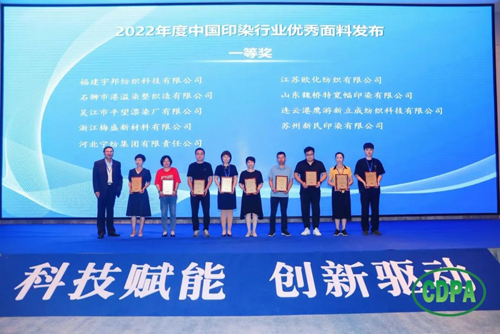 ![]() 會上,中國印染行業協會副會長兼秘書長林琳宣讀了“關于發布2022年度中國印染行業優秀面料獲獎產品及企業名單的決定”。杭州卓達染整有限公司醋滌緞面料榮獲2022年度中國印染行業優秀面料特等獎;青島鳳凰東翔印染有限公司超級發絲紋機印蠟染面料等 49件產品榮獲2022年度中國印染行業優秀面料一等獎;杭州天瑞印染有限公司新意面料等48 件產品榮獲2022年度中國印染行業優秀面料二等獎。