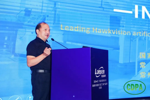 ![]() “人工智能的迅速發展將深刻改變人類社會的生活、生產方式。”常州宏大智慧科技有限公司董事長兼總經理顧仁作“基于新一代人工智能技——INSHK定型智慧系統”主題分享時表示,印染智能制造的核心要素包括三個方面:工藝數字化、裝備智能化、管理信息化。結合當下產業的智能化需求,顧仁詳細介紹了常州宏大智能定型機、智能在線克重儀、密度檢測自動超喂控制系統、定型織物狀態在線測控系統、定型機自動節能排風系統、智能圖像整緯機等產品,用緊跟時代需求的產品研發踐行企業“創新、求精、卓越”的發展理念。