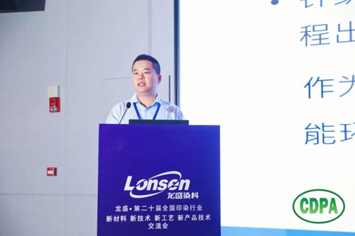 ![]() “分散染料的色牢度是當下引發售后糾紛的主要問題之一。”浙江龍盛集團股份有限公司資深應用服務工程師肖幸豐作“新一代高牢度分散染料和活性特深黑的解決方案”主題分享時說,分散染料的色牢度問題主要包括水洗后有殘液、泡水牢度差、汗漬牢度差、升華牢度差等。“浙江龍盛集團新一代分散高牢度染料LHF系列,在提升水洗牢度的同時,兼顧汗漬牢度、水浸牢度等,同時在泡水牢度等多方面也有很好的表現,能有效解決各類滌綸織物染色后在清水或洗衣粉中浸泡出現的落色、沾色、串色等問題。”肖幸豐介紹說。在活性特深黑領域,浙江龍盛集團成功開發出活性極致黑WG-400%,為活性染料的進一步發展,全面取代硫化染料、還原染料等提供了范本,正在逐步實現“染深比墨還黑、染色殘液還水清”的愿景。