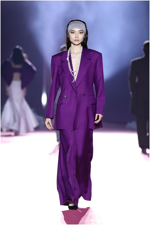 ![]() ![]() ![]() ![]() ![]() ![]() 本季色彩以石蠟色中的霾灰、煙粽為基調,點綴蜜蠟、炫紫、藤黃,再輔以白、灰黑、寶石綠為平衡,展現平靜下的波瀾暗涌。看似平淡柔和的色彩之下流動的是從量變極速質變的神奇反轉,這種表面溫柔的不羈是王鈺濤流淌在血液里的養分,讓他的作品得以在不動聲色中萬般變幻。