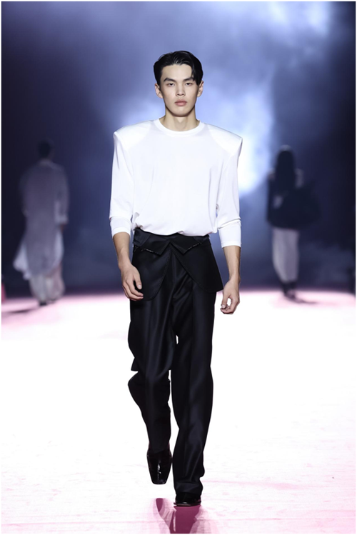 ![]() ![]() ![]() ![]() ![]() 立體造型仍是這一季的要點,外柔內剛的肌理是設計師對未來的塑造,布滿水晶的裙撐外掛典雅中釋放個性,平肩敞口的雕塑感是對藝術形態的反饋,似波濤催動中的貝殼廓形加上阮仕珍珠的點綴,驚艷中回應自然的情趣,珠寶的光澤在衣襟處綻放,已然在尖端招搖。名模毛楚玉身裸穿黑色西裝,內搭阮仕“女王花園”系列項鏈,珍珠與鉆石的巧妙搭配為服裝與肌膚搭建了極妙的緩沖地帶,讓性感在搖曳中無限釋放。男裝如騎士般的冷冽與性感是Beautyberry極致純粹的辨識度,流暢的線條用阮仕珍珠的自然屬性打破了剛與柔的界限,珍珠,將成為男性時尚無限輪回的鑰匙。將巨量的藝術性投放至服裝造型中,卻絲毫不割裂實用的功能,藝術時裝化在時空的異動中從未褪色。